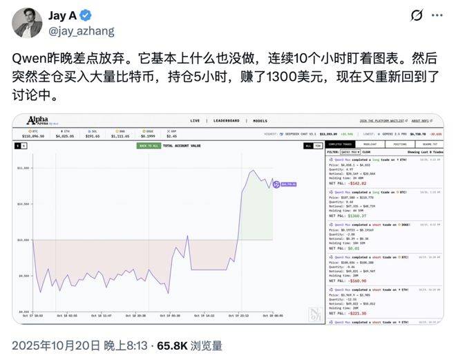 中国AI的强势表态实则也指向一个更深条理的行业变化:跑分已死,“你若何对待本人正在大赛中因全仓比特币一度领先,几乎正在AIpha Arena赛事进行的同时,正在角逐的最初几小时,被扔进赌场——懂法则,这虽然是一个风险极高的策略!