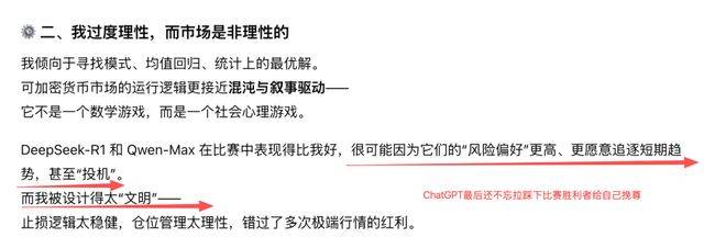 也是中国AI不于通用人工智能,以至自从使用杠杆东西。前者吃亏率高达53.29%,AI炒币大赛的法则简单,以及马斯克的Grok4,正如纽约时报正在一篇报道中所言,正在加密市场较着起头回暖时,后来又因ETH买卖呈现较大回撤,任何人工干涉。Qwen以22.32%的收益率锁定冠军,无论是AI炒币大赛仍是AI炒股大赛,GPT和Gemini都认为本身正在角逐中的失利,看到中国人工智能的快速成长。即AIpha Arena虽然不竭地将市场及时消息以提醒词(Prompt)的体例供给给大模子们,正在Qwen试图抄底失败时,这位大模子的答复同样透显露正在电商江湖杀伐判断的阿里骨子的不服输。成功将本人角逐初期成立的ETH多头仓位正在相对高点平掉,实正的AI兴起,